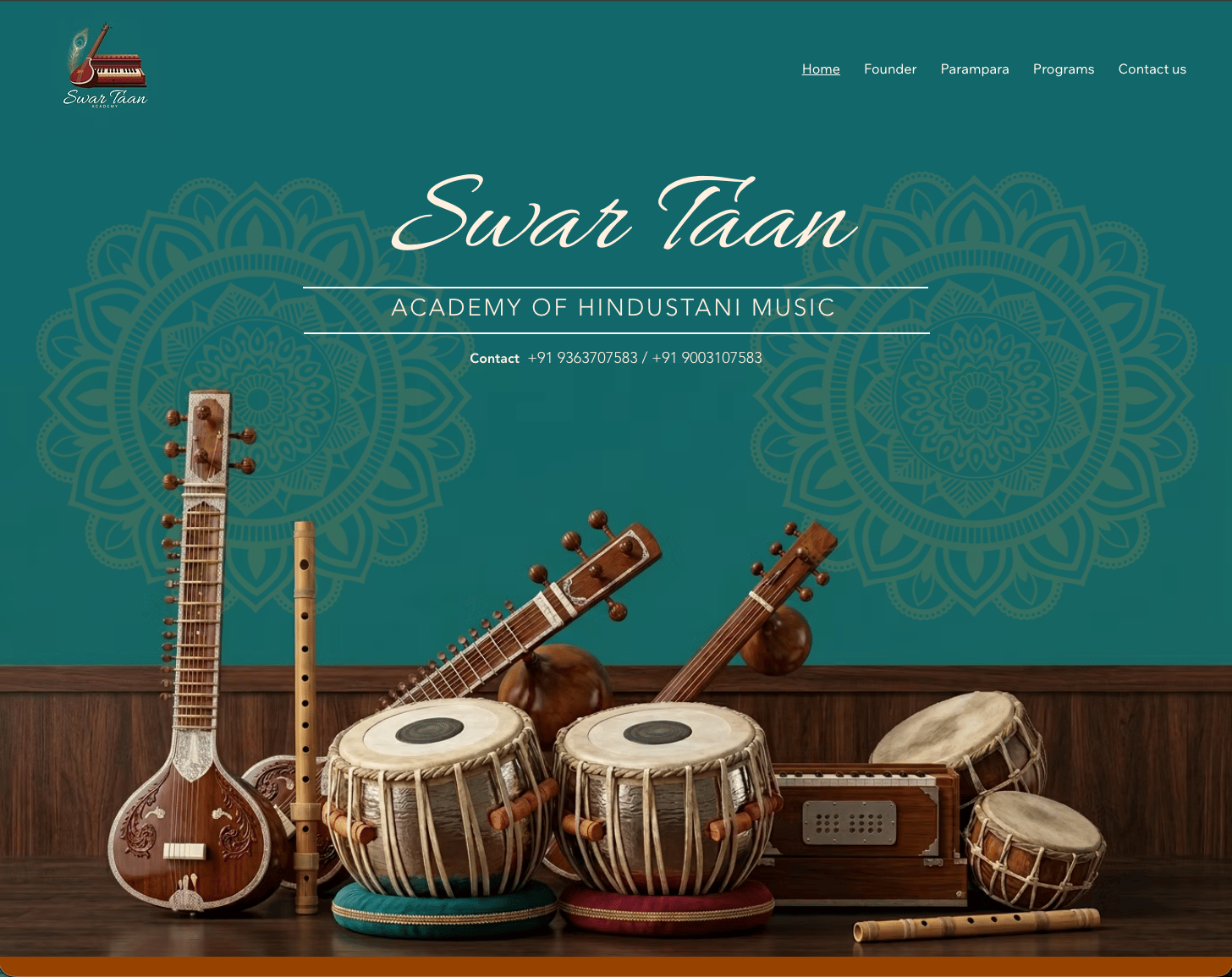 A clean, minimal website for Swar Taan Academy of Music, designed to highlight their programs with clarity and simplicity. The focus stays on showcasing what they offer, while all enquiries and interactions are streamlined through direct contact.