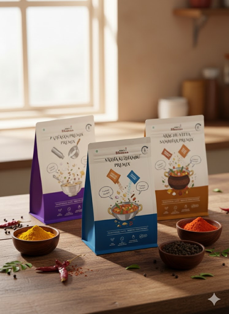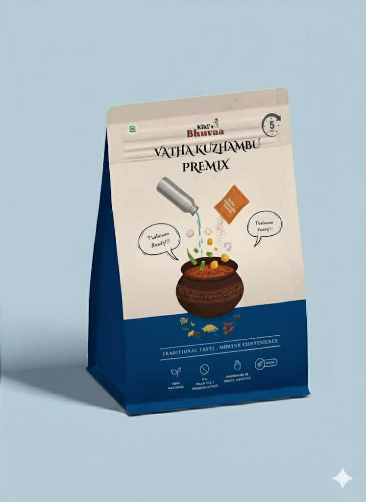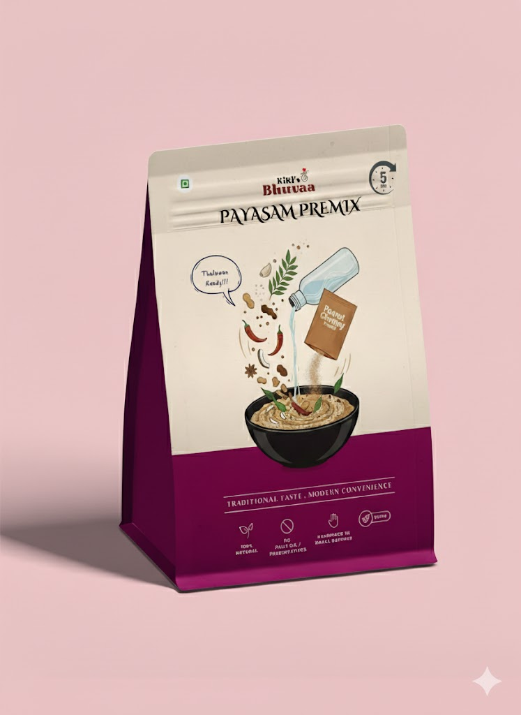 A packaging design project for Kiki’s Bhuvaa, a line of daily food premixes. The goal was to create authentic, ingredient-focused, and modern designs that clearly communicate convenience while reflecting the warmth and heritage of Indian home-cooked food. The project involved color exploration, illustration development, typography pairing, and iterative feedback from the target audience, resulting in a cohesive and relatable brand identity.